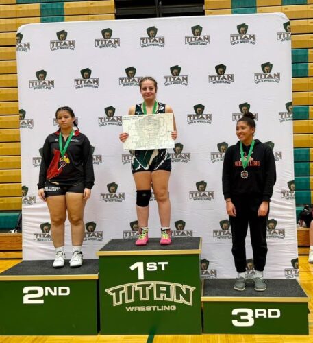Haley Stenz (125) won first place with four match wins. Madelyn Farley (155) received two wins, while ...