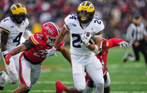 COLLEGE PARK, Md. (AP) — Bryson Kuzdzal ran for 100 yards and three touchdowns to help No. 18 Michigan to a 45-20 victory over Maryland on Saturday, a week before the Wolverines host top-ranked Ohio State.