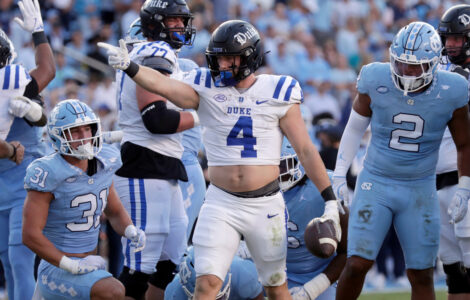 CHAPEL HILL, N.C. (AP) — Anderson Castle punched in the go-ahead 1-yard touchdown with 2:18 left set up by an audacious fake field-goal call and Duke followed with a late stop to hold off rival North Carolina 32-25 on Saturday.