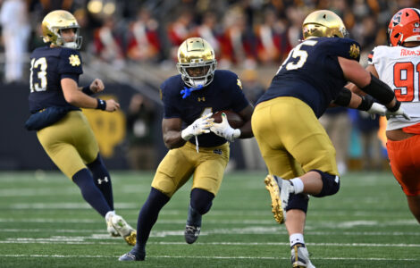 SOUTH BEND, Ind. (AP) — Jeremiyah Love bolstered his Heisman Trophy candidacy with 171 yards rushing and three touchdowns on just eight carries, and No. 9 Notre Dame blew out injury-decimated Syracuse 70-7 on Saturday.
