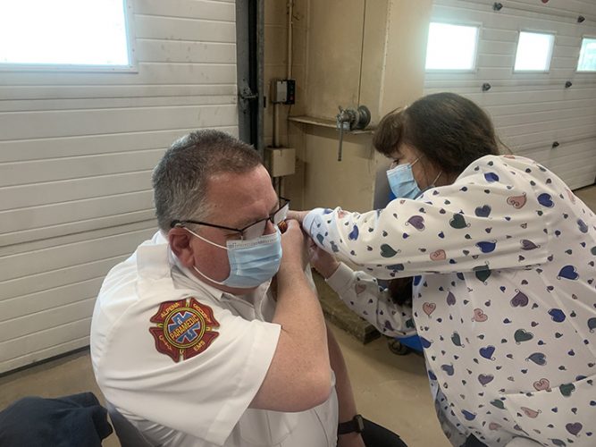 ALPENA -- Local first responders received the coronavirus vaccine at the Alpena Public Safety building today as local public health officials announced three more Northeast Michiganders had died after being infected.