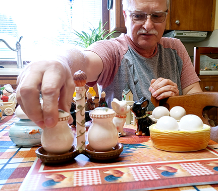 - News Photo by James Andersen Alpena resident John Konecki adjusts some of his salt and pepper shakers sets in his kitchen.