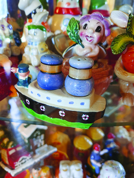 News Photo by James Andersen Some of John Konecki’s salt and pepper shakers are shown, including a boat with salt and pepper shaker funnels.