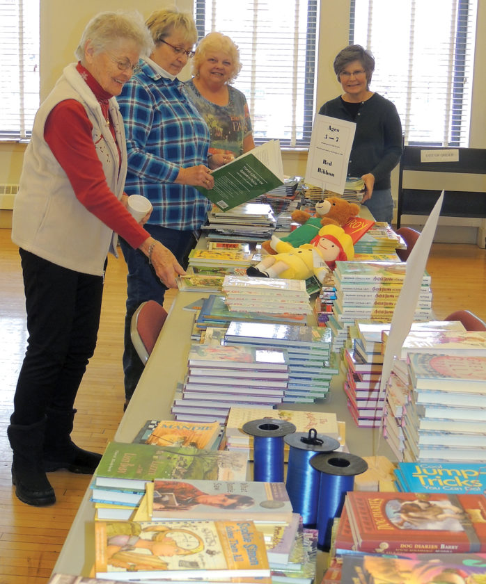 Monday’s preparation for the Salvation Army distribution first involved sorting the books by age category. Altman said a group of retired teachers, including Greko, were asked to help with the sorting since they have a better understanding of what books are appropriate for which age. A second round of volunteers then came to do the ribbon tying honors.