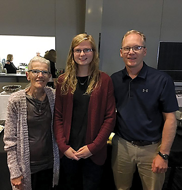 Friends of Alpena Farmers Market presented Carey May Udell, a 2019 Alpena High School graduate, with a $500 scholarship at the recent Locavore dinner. Pictured from left to right are Linda Canfield, Udell, and Dr. J.B. Cook. Udell is attending Alpena Community College to earn an Agricultural Business Degree.