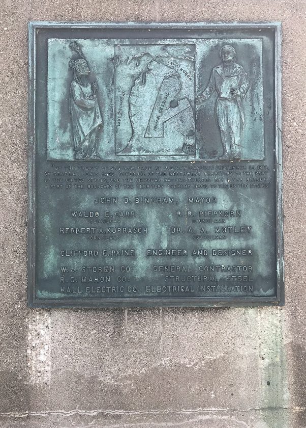 News Photo by Darby Hinkley The above plaque is mounted on the Second Avenue bridge overlooking the Thunder Bay River in Alpena. It commemorates the Treaty of Saginaw, signed 200 years ago on Sept. 24.