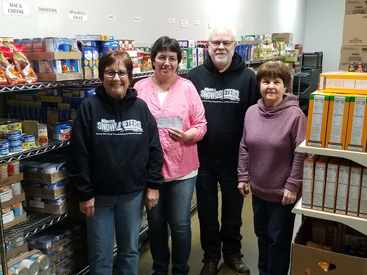 Courtesy Photo Members of the the Alpena Snowdrifters Snowmobile Club are shown making their yearly donation to the food pantry at St. Vincent de Paul. In past years, turkeys were donated for families though club member donations, but with the generously of Meijer, all dollars given are tripled, so this year’s donation of $545 helped the pantry to the tune of $1613. Pictured are club members Tom and Cindy Smigelski, and Sue Eller, along with St. Vincent pantry manager Kathy McClure.