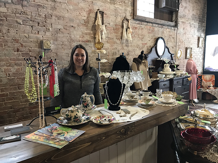 News Photos by Darby Hinkley Above, shop owner Renee Blanchard stands behind the counter at Alpena Vintage Company in downtown Alpena.