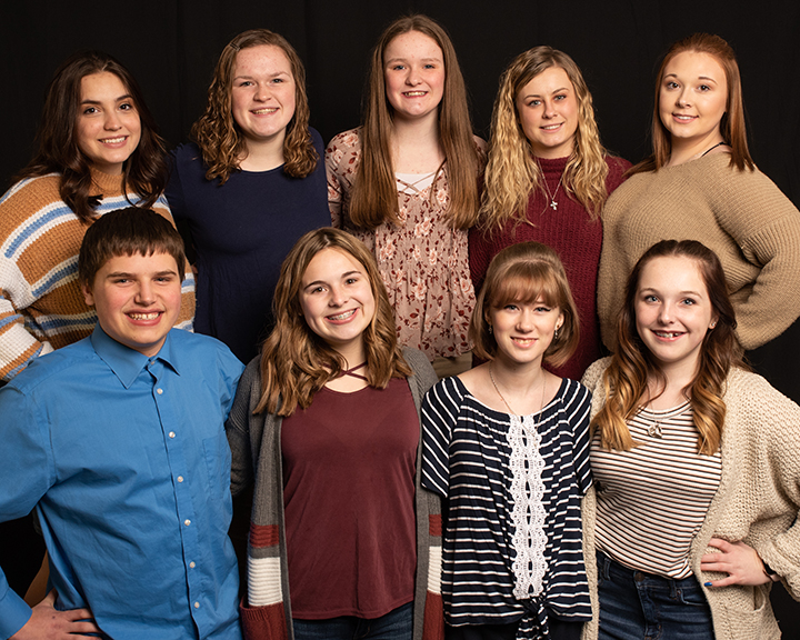 Courtesy Photo The Alpena Figure Skating Club, in its 90th year, presents “A Royal Gala On Ice,” next weekend, March 20 and 21. Pictured above are the high school skaters joined by hockey escorts. In back are Miya Ayala, Alicia Ballor, Hunter Ballor, Megan Schram, and Justice Torz. In front are William Bushey, Addison Marceau, Haley McKenzie, and Graci Villeneuve. The group will be skating to “Ain’t Goin’ Down ‘Til the Sun Comes Up,” by Garth Brooks.