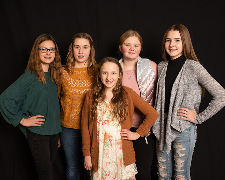 Courtesy Photo Basic 2 skaters Erin Williams, Luke Erickson, Reese Schefke, and Emmalynn Greim. Missing from the photo is Violet Lafleur. The group will be skating to “Crocodile Rock,” by Sir Elton John.