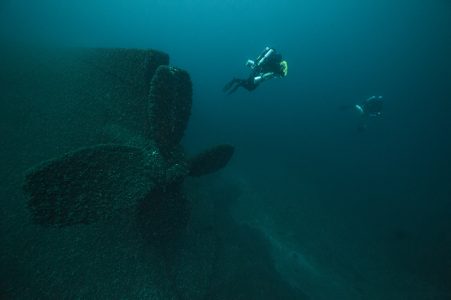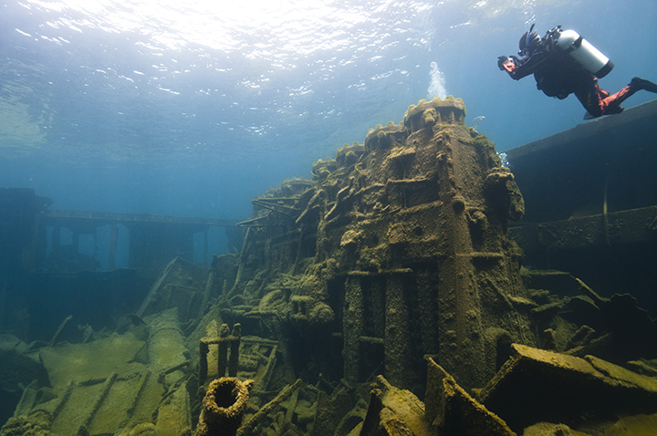 - Courtesy Photo Divers swim by the German freighter Nordmeer, which ran aground on Nov. 19, 1966 in this photo provided by the Thunder Bay National Marine Sanctuary.