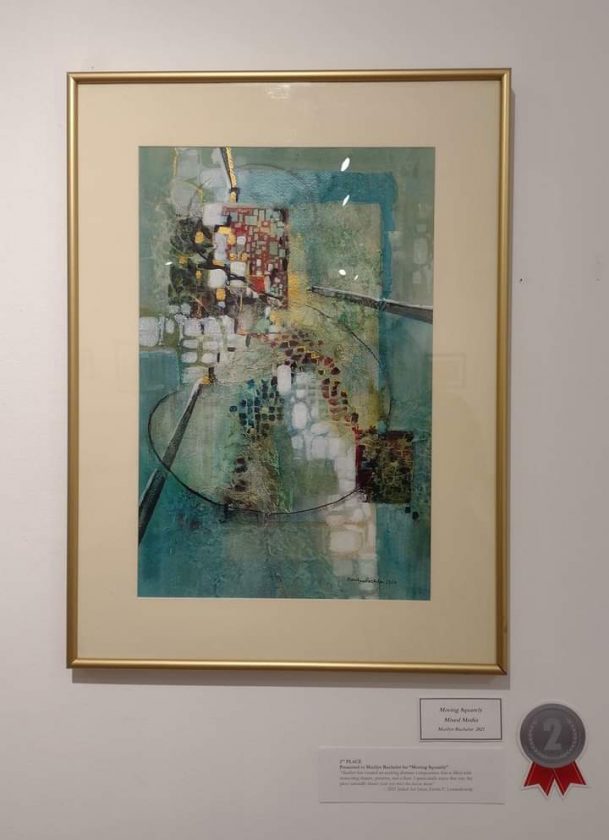- Above is “Moving Squarely,” by Marilyn Bachelor, in second place.