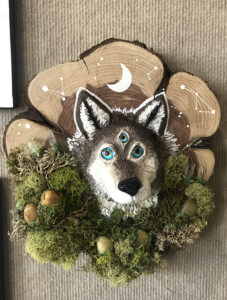 News Photo by Darby Hinkley This mixed media three-eyed wolf is by Hannah Harte, one of 34 artists featured in Art in the Loft’s “SummerView.”