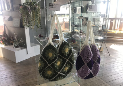 News Photo by Darby Hinkley These handbags, handcrafted by Julia Bartz, are on display and for sale at Art in the Loft’s “SummerView.” All the artwork in the exhibit is for sale.