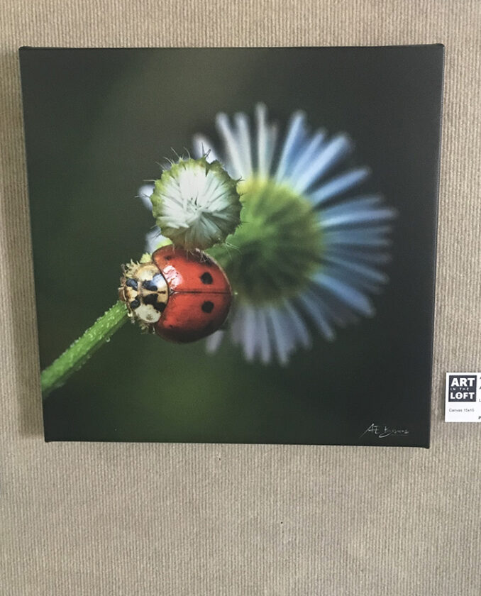 - News Photo by Darby Hinkley This photograph of a bug on the stem of a flower is by Ann Biswas, showing for the first time at Art in the Loft.