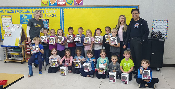 Arzos give Immanuel students gifts for graduating kindergarten