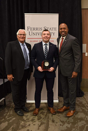 Courtesy Photo Garrett Beaulieu, an Alpena native, received the John and Sue Bradac Above and Beyond Award at an awards dinner held in the fall of 2023. The Bradacs established the Above and Beyond award, presented annually to select alumni who are members of the Student Alumni Gold Club and have contributed significantly to the campus and alumni communities. Recipients are role models, and by example, encourage peers to assist in achieving the mission of Ferris State University. This award reflects the university’s appreciation for its SAGC members and encourages their continuing commitment to Ferris. Beaulieu is serving his second term as president of the Student Alumni Gold Club. In addition to his involvement in SAGC, he is the president of the Ferris State Associated Construction Students RSO, secretary of Ferris State Sigma Lambda Chi Construction Honors Fraternity, and is an active member of the Ferris State ASO Construction Competition Team. Beaulieu graduated in December with a Bachelor of Science degree in Construction Management and has secured a position with the Christman Company out of Grand Rapids. He is the son of Alpena resident Barb Beaulieu.
