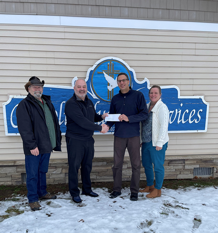 Courtesy Photo Catholic Human Services make a difference in the lives of so many people. Scott Brooks (president of the Church Council) and Pastor John Shipman of St. Paul Lutheran in Alpena presented a check of $500 to this worthy organization. Thanks to the Trust and Endowment Fund for making this monetary gift possible.