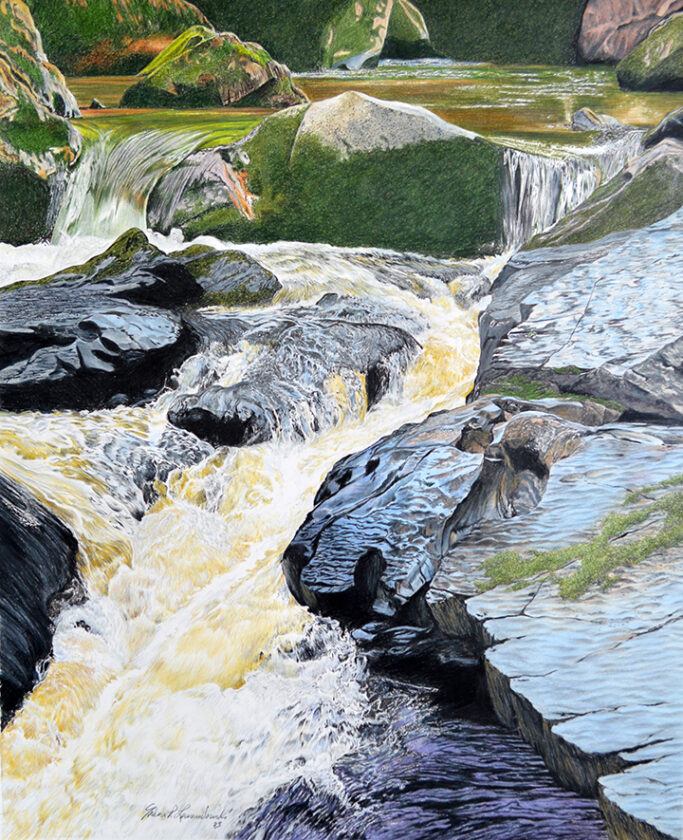 Courtesy Art Above is Alpena artist Erwin P. Lewandowski’s colored pencil drawing “Cascading Water XXVII.”