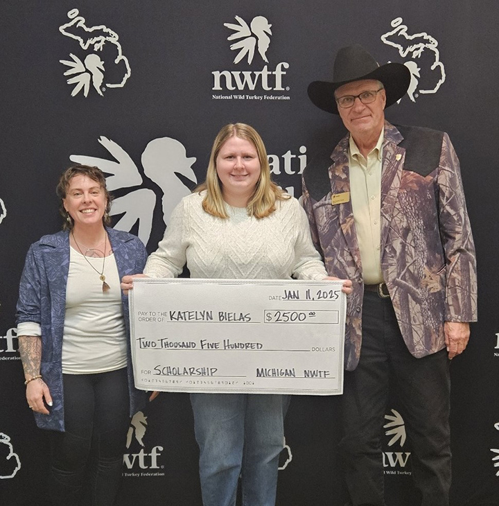Courtesy Photo Pictured, from left, are Jen Davis with the National Wild Turkey Federation, scholarship recipient Katelyn Bielas, and Bert Vander Weele with the National Wild Turkey Federation.