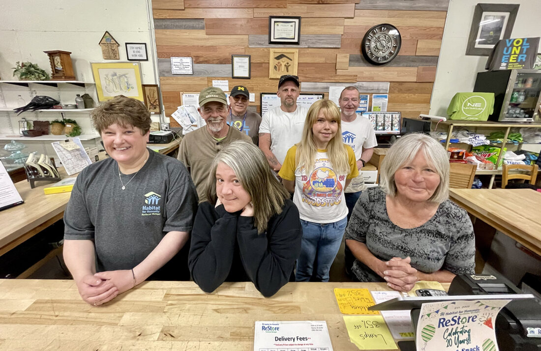 Courtesy Photo In this photo taken by Habitat for Humanity Northeast Michigan Executive Director Ted Fines, Habitat staff members are seen behind the counter at the ReStore on Thursday. Pictured, in front, from left, are Jenny Nestell, Kristen LeSage, and Theresa McMaster. In the second row are Ross Bartz and Ona Rude. In back are Dave Haskin, Tom Karr, and Anthony Barclay.