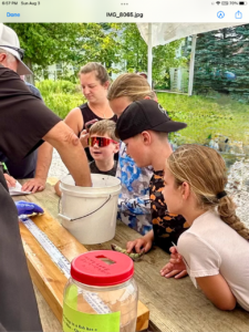 Courtesy Photo Youth watch as a man reaches into a bucket to retrieve a fish on Saturday, Aug. 2 at the 2025 Long Lake Family Fishing Derby.