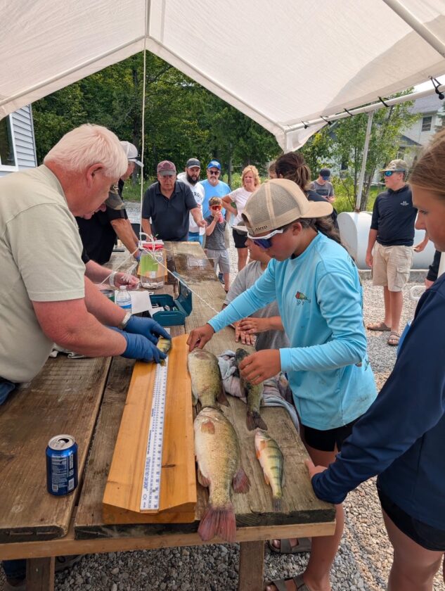 Courtesy Photo Youth line up to have their fish measured on Saturday, Aug. 2 at the 2025 Long Lake Family Fishing Derby.