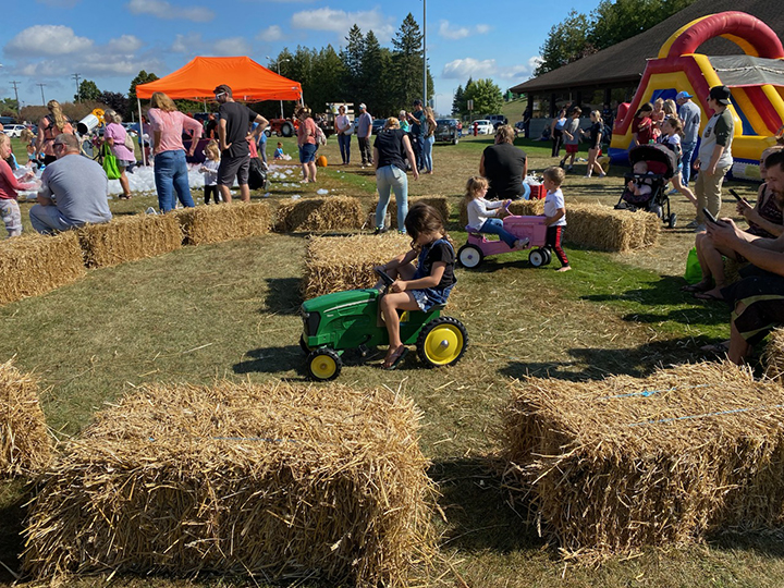 The event will also include tents and tables set up by organizations and service clubs, including free children’s books from the Kiwanis Club of Alpena, a hay bale pyramid with help from Dave Timm Tillage, E-Free Church face painting, Kamara Marsh balloon animals, Wolverine State Credit Union dunk tank, Northland Area Federal Credit Union duck race and snow cones, Blue Cross Blue Shield fruit and vegetable tasting, AAACU foam party, Optimist big tents, HPC free popcorn and water, Stanson pedal tractors, Northern Michigan Fiber Festival, Alpena County Sheriff Scoop Squad ice cream truck, Walmart bike drawing, Alpena County Library kids program, AMA-ESD Great Start Collaborative, NEMSCA, Alcona Health Center, MyMichigan Health Center, Alpena Childcare and Development Center, Northeast Michigan Family Resource Center, Alpena Fire Departments trucks, ambulances, and police.