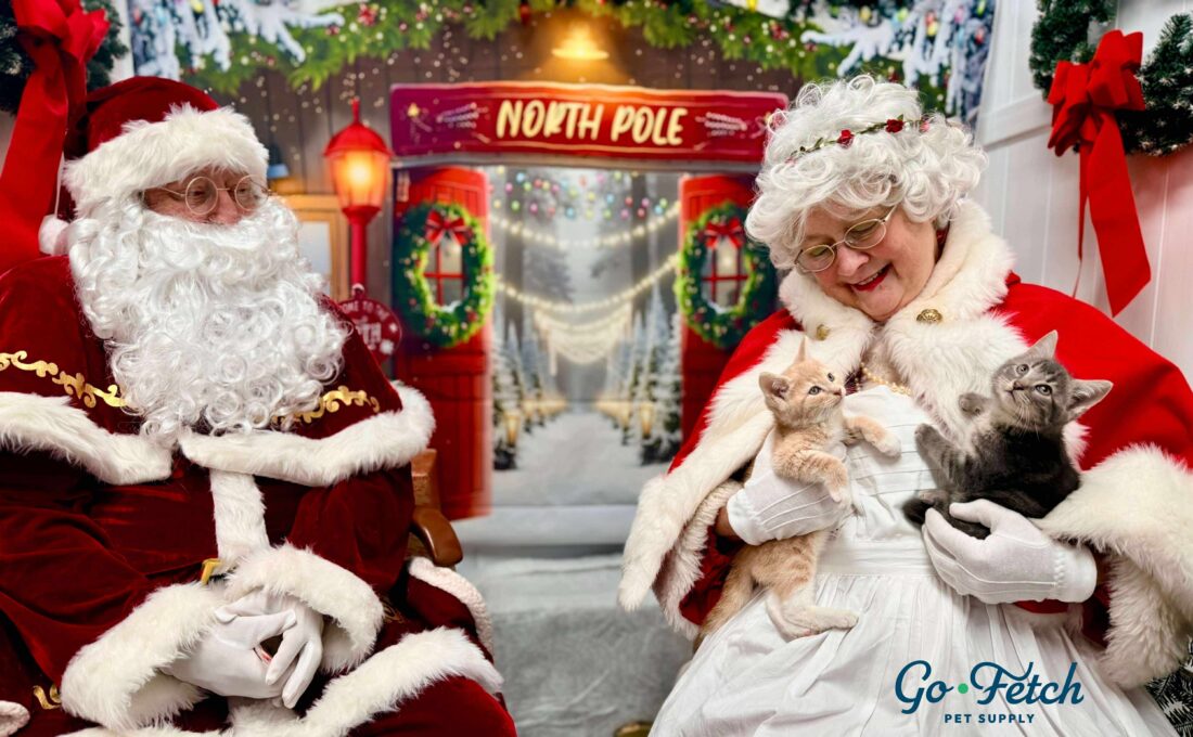 Courtesy Photo On Saturday, Mr. and Mrs. Claus are seen with two cats at Go Fetch Pet Supply in Alpena. Pet owners were invited to bring their fur friends to the store for free Christmas photos.