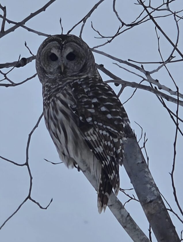 Photo provided by Jessica Kelley A barred owl is seen perched near Crooked Hollows Homestead on Bartz Road in Hubbard Lake.