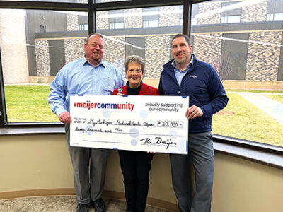 Courtesy Photo Holding a check to support the new patient tower at MyMichigan Medical Center Alpena is (left to right) Warren Richter, Meijer Alpena store director; Ann Diamond, MyMichigan Health Foundation fund development director; and Karl Kelly, Meijer market director. Richter and Kelly, on behalf of Meijer, recently presented Diamond with a $20,000 donation that will fund a private patient room in the new patient tower.