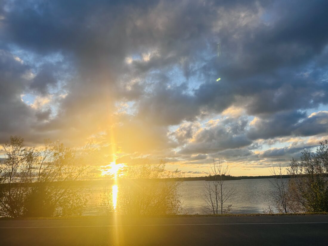 Photo by Sandy Blumenthal Large rays of sunlight pierce through some dark clouds at Grand Lake in this photo submitted to The News by Blumenthal late last month.