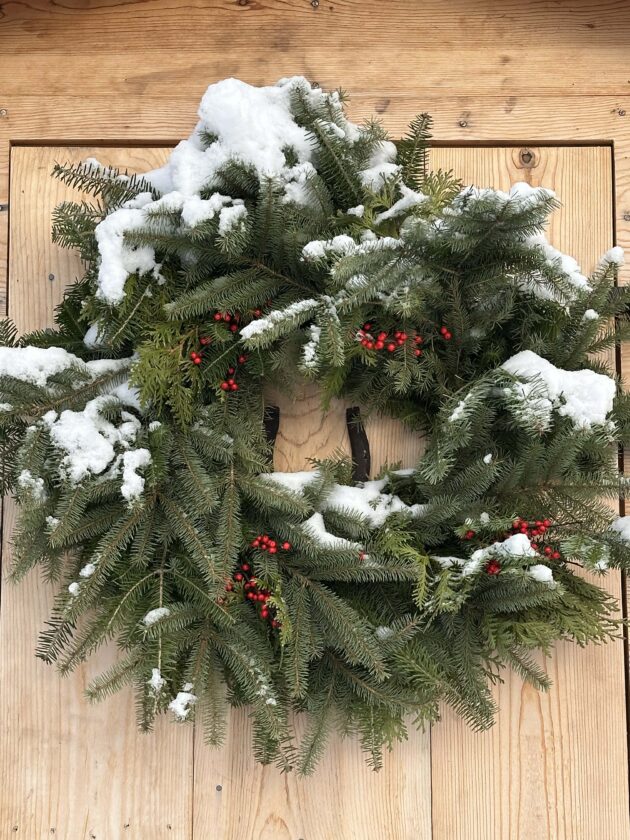 Photo by Shannon Roeske A light dusting of snow covers a holiday wreath made by Colten Roeske at his home in Alpena County. The photo of the decoration was submitted to The News earlier this week by his wife Shannon Roeske.