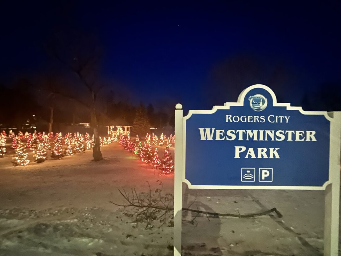 Photo by Wendy Payne Dozens of Christmas trees fill Westminster Park in downtown Rogers City. The photo was submitted to The News by Wendy Payne on Sunday.