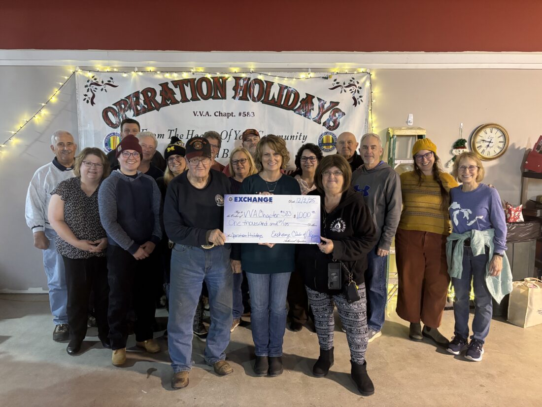 Courtesy Photo Exchange Club President Staci Chroninger, center, presents a check for $1000 to Vietnam Veterans for its Toys for kids holiday fundraiser.