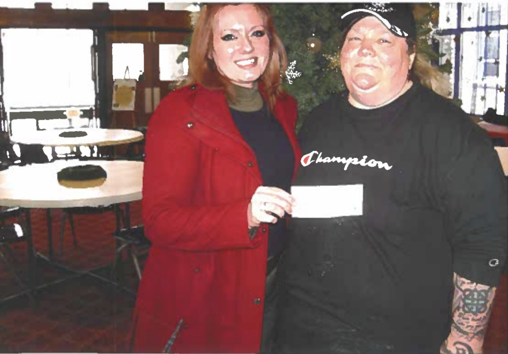 Courtesy photo Director of the Center of Charity Christina Kihn, left, and Barb Lowe from the Friendship Room, show off a check that was given to the charity by the Alpena Longbeards,