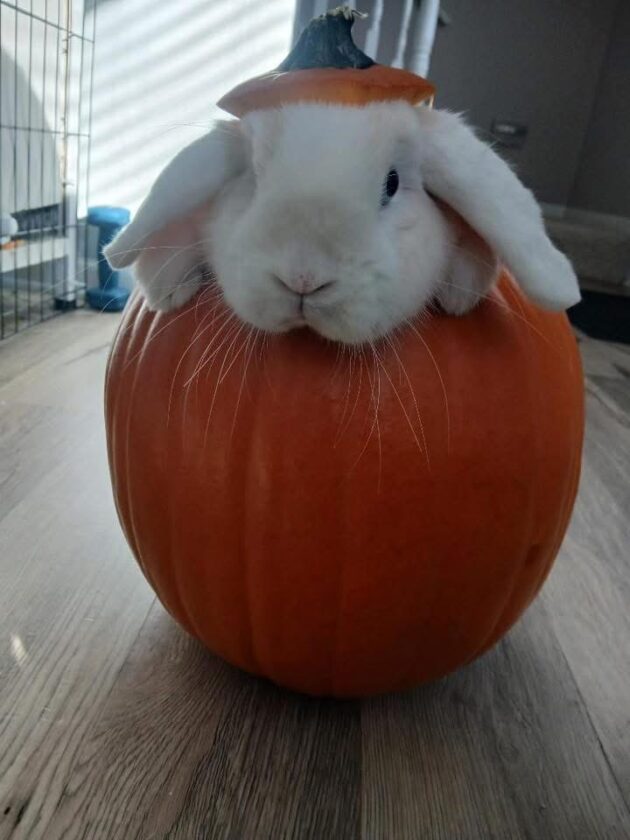 Photo by Tina Skiba The rabbit named Bunbun pops his head out of the top of a pumpkin in this photo submitted to The News by Tina Skiba last week.