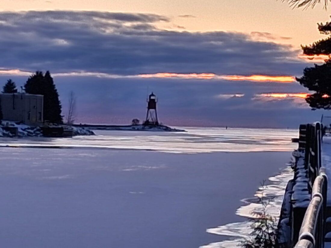 Photo by Amber Heck The sun peaks between some dark clouds in this photo taken on the shore of the partially frozen Thunder Bay River in Alpena. The photo was submitted to The News by Amber Heck.