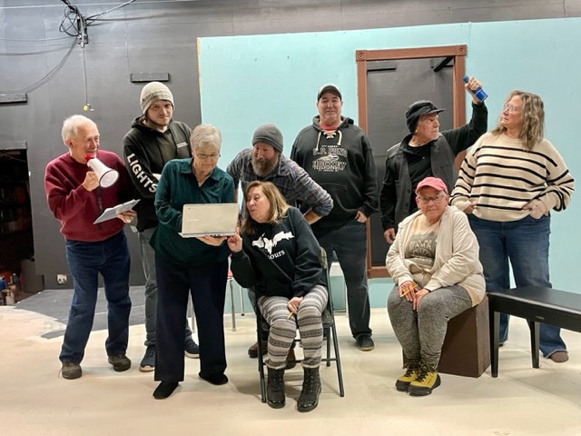 Courtesy photo The Alpena Civic Theatre is in the early stage of rehearsal for “Finding Gladys.” The play opens March 12 and runs through March 22. The cast includes: In the front row are Linda Suneson ( Gladys)Doug Haines ( Miles) Diane Lozon ( Director), Donna Roussin ( Mildred) In the back row is Mike Daugul ( Cubby), Zac Clement ( Devlin), Matt Southwell ( Morton), Bill Powell (MARVIN) and Carol Rundell (Connie). Missing from the photo is Assistant Director Judy Beyer.