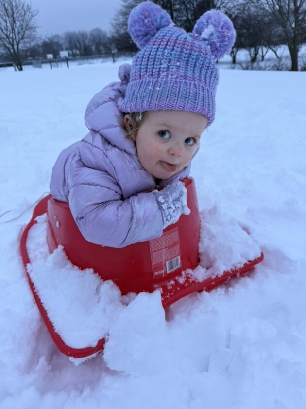 Photo by Tabby Metheringham Rosalee Metheringham plays on her sled at Bayview Park in Alpena. The photo was submitted to The News by Tabby Metheringham earlier this week.