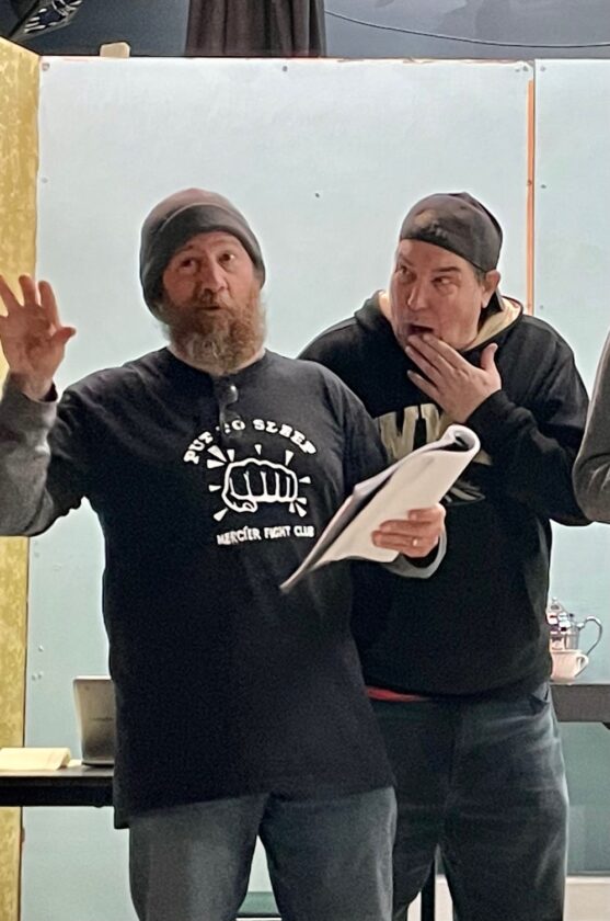 Photo by Bronwyn Woolman Matt Southwell, Morton, and Doug Haines, Miles, rehearse their roles for the upcoming production of Finding Gladys at the Alpena Civic Theatre. The play will be performed March 12- 15 and March 19- 22. The feature is being directed by Diane Lozen.