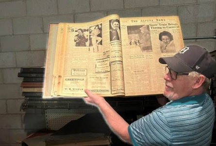 Courtesy photo ALPENA — The Alpena News' Community Editor Steve Schulwitz shows off old copies of the local paper to the Alpena Lifelong Leaners. Schulwitz and Senior Reporter Kayla Wikaryasz will present to the Lifelong Learners on Wednesday at the Alpena Community College.