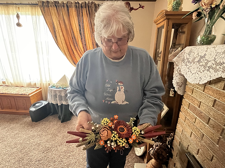 News file photo Carol Shafto holds a decoration she built out of LEGO that is displayed in her home in Alpena.