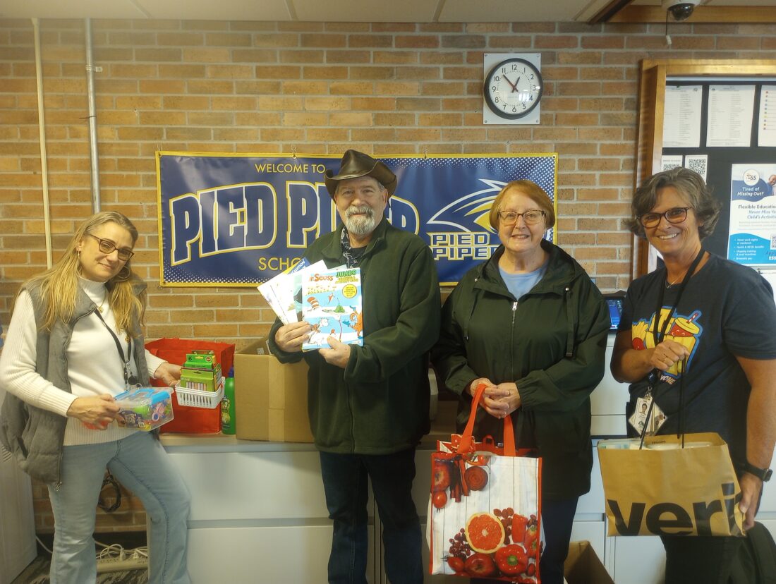 Courtesy photo Representatives from St. Paul Lutheran Church and Pied Piper pose for a photo after the church donated school supplies through its March Service Activity program to support students at the school.