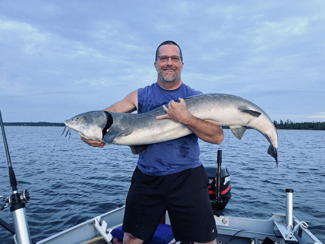 Dan Kulik, from Rogers City, landed a huge sturgeon while trolling for walleye on Black Lake on Wednesday. The fish measured 66 inches and weighed approximately 65 to 70 pounds. The fish was caught on a nightcrawler harness using 8-pound test line and was immediately released. The Michigan Department of Natural Resources Field Office in Gaylord was notified.