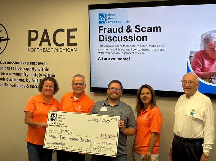 AAACU’s donation to support Northeast Michigan PACE is made possible by the credit union’s Community Investment Fund. These funds are comprised of dollars donated back into our communities thanks to credit union members who choose to receive their monthly statements electronically. The credit union pledged to donate $9 annually for each enrolled account, and in 2025, AAACU will donate up to $297,600 back into the communities they serve.