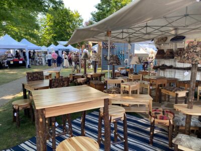 Beautiful handcrafted wooden furniture is seen on Sunday at the 51st annual Harmony Festival in Harrisville.