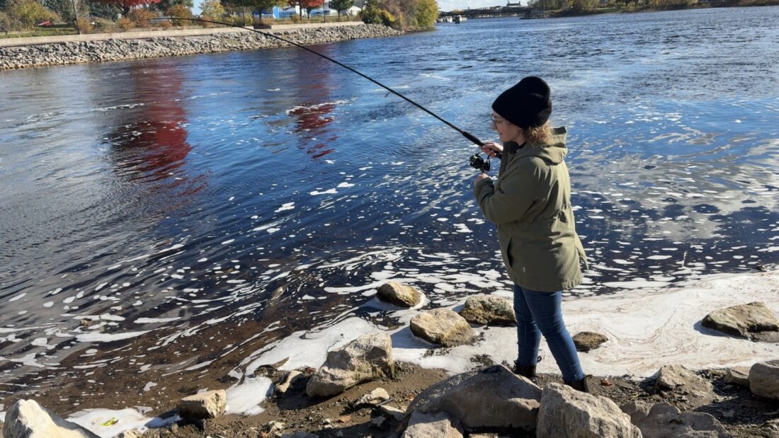 News Photo for Kayla Wikaryasz On Tuesday, Samantha Recio is seen fishing by Lamar Park in Alpena. Recio said that she and her husband are visiting Alpena to celebrate their first wedding anniversary.
