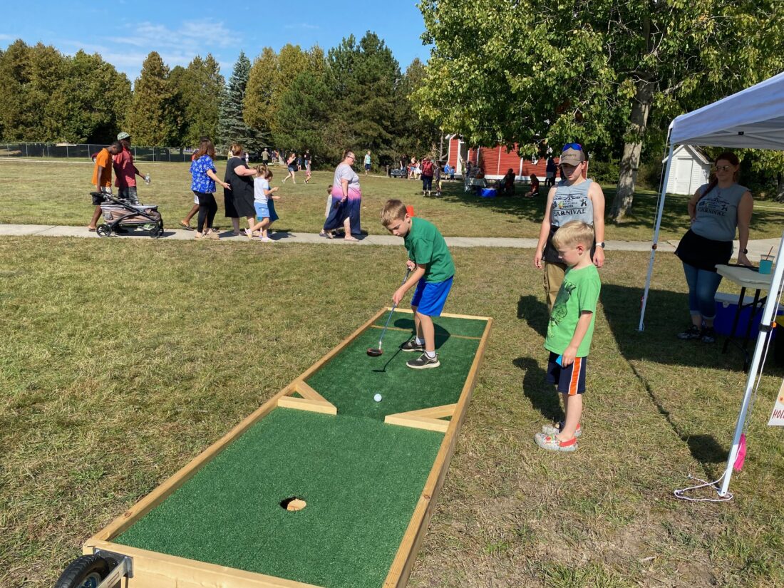 News Photo by Darby Hinkley Children play mini golf on Saturday at the Besser Museum Fall Festival.
