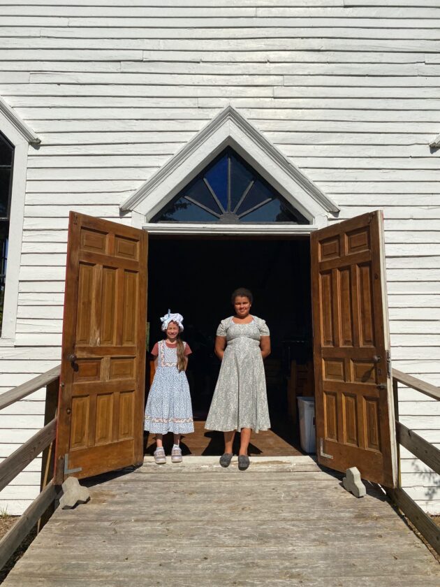 - News Photo by Darby Hinkley Layla Ellsworth, 8, and Juliana Avery, 10, welcome guests to the 1912 Spratt Church on Saturday at the Besser Museum Fall Festival. The Girl Scouts from St. Paul Lutheran Church gave tours of the historical building.